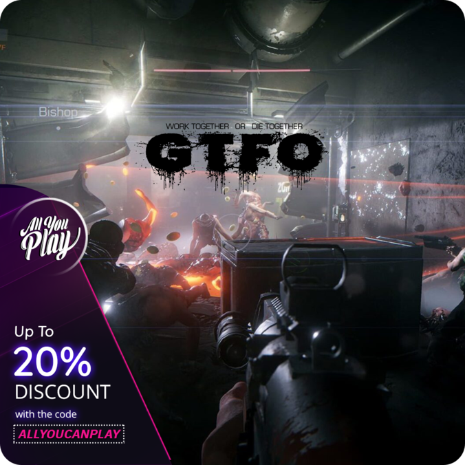 | GTFO SALE | GTFO is a 4 player action/horror cooperative first-person shooter for hardcore gamers looking for a real challenge. Players get to play as a team of prisoners, forced to explore and extract valuable artifacts from a vast underground complex that has been overrun by terrifying creatures. β β Get it now while on early access with a 20% discount!β